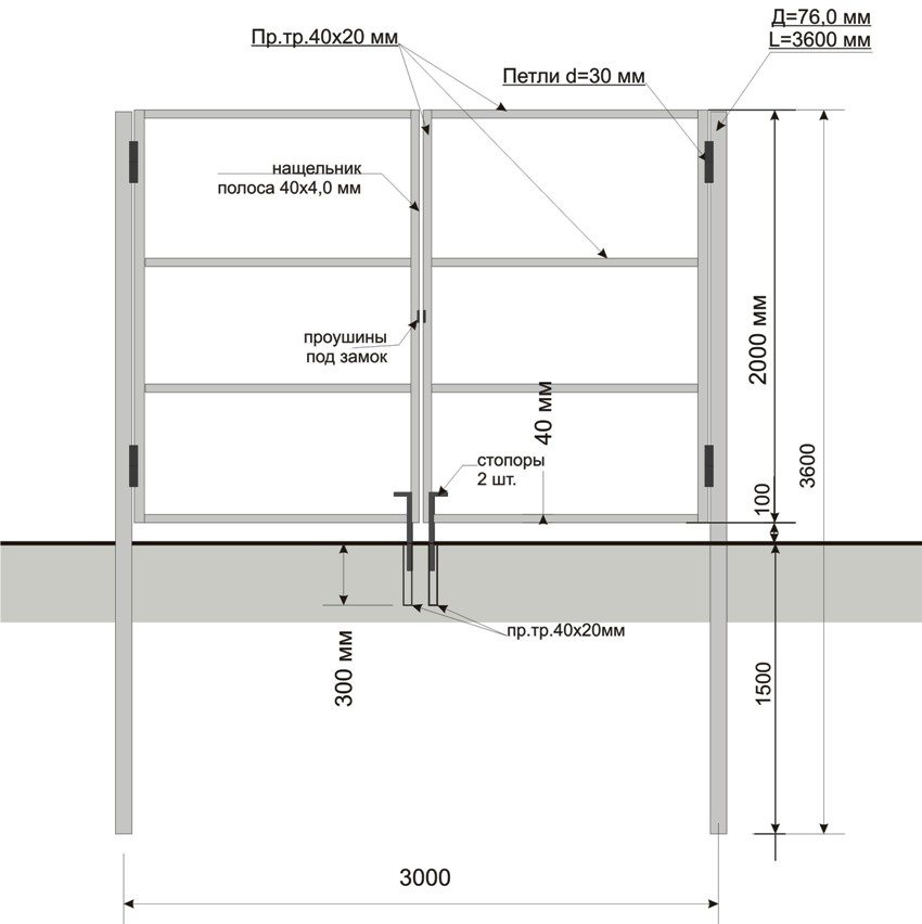 The flaps themselves are made of pipes with a square cross section, but smaller. Recommended dimensions 40x25x3000 mm. The sash frame is made by welding in the form of ordinary frames and then reinforced with crossbars or diagonals from the same material. It is imperative to provide space on the doors for bolts, locks and opening-closing stops.