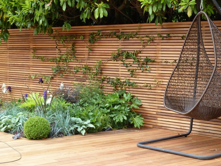 - "Ladder" or "Herringbone" - this type of fencing is characterized by the arrangement of horizontal boards between the supports at a certain angle and overlap. Outwardly, this design resembles blinds: the space behind fence not visible, and oblique gaps allow air and light to pass through;