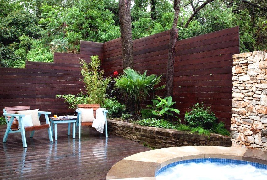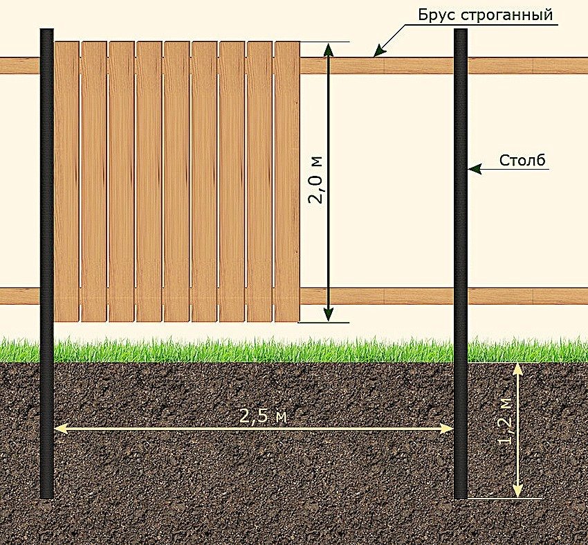 You can build a fence made of wood with your own hands using a board with a section size of 15x2.5 cm. The length of the board is selected depending on the height of the planned fence. Traditionally, fences with a height of 1.5 to 2.5 m are installed.