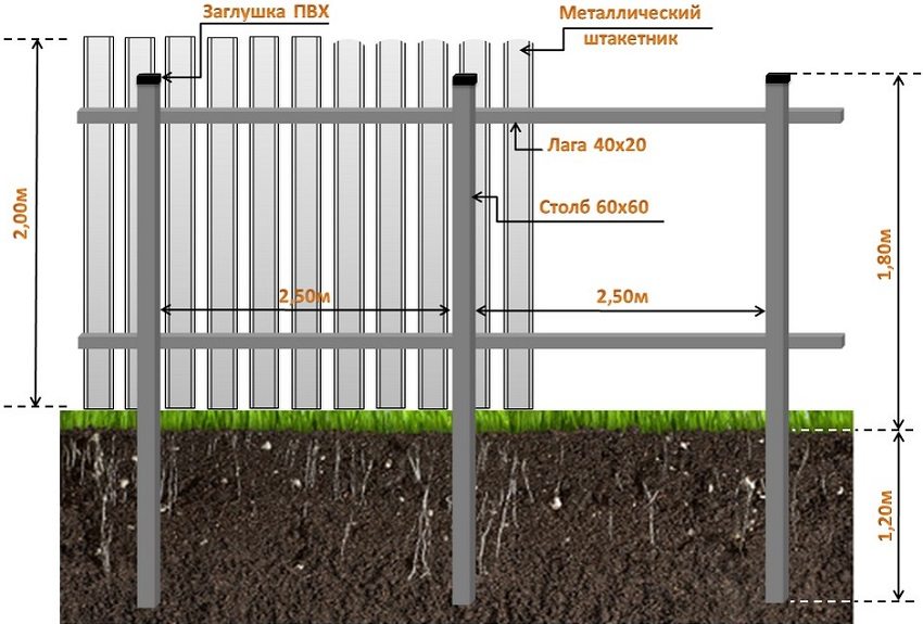 - shaped hollow pipes with a cross-sectional area of 60x60 mm - given that the sections of the metal picket fence are quite light in weight, this cross-sectional size will be sufficient for vertical supports