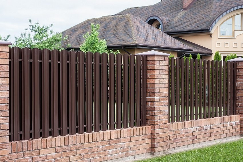 Many consider a metal picket fence to be the optimal solution for fencing backyards and summer cottages. The installation of such a fence does not require significant financial costs, the fence can be easily assembled independently and gives a chance to prove itself in the role of a designer by combining a metal picket fence with other building materials.