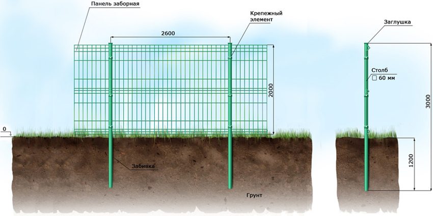 In the case when sandy-clayey soils prevail on the site, they resort to the method of complete concreting of the supports. And if the earth is clay, it is recommended to choose a method of filling the holes around the installed pillars with rubble (bucking), followed by their compaction and pouring with concrete. After the final setting of the concrete (about 3 days), you can start attaching the mesh panels to the supports.