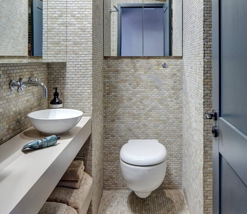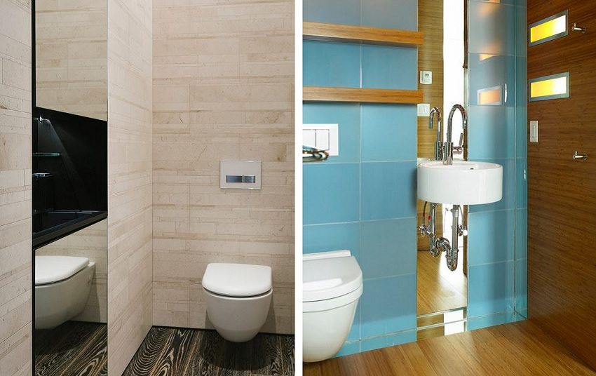 - use glass or mirrored panels to increase the space. The mirrored ceiling in the toilet is not the best option, but the glass elements on the walls will look very good;
