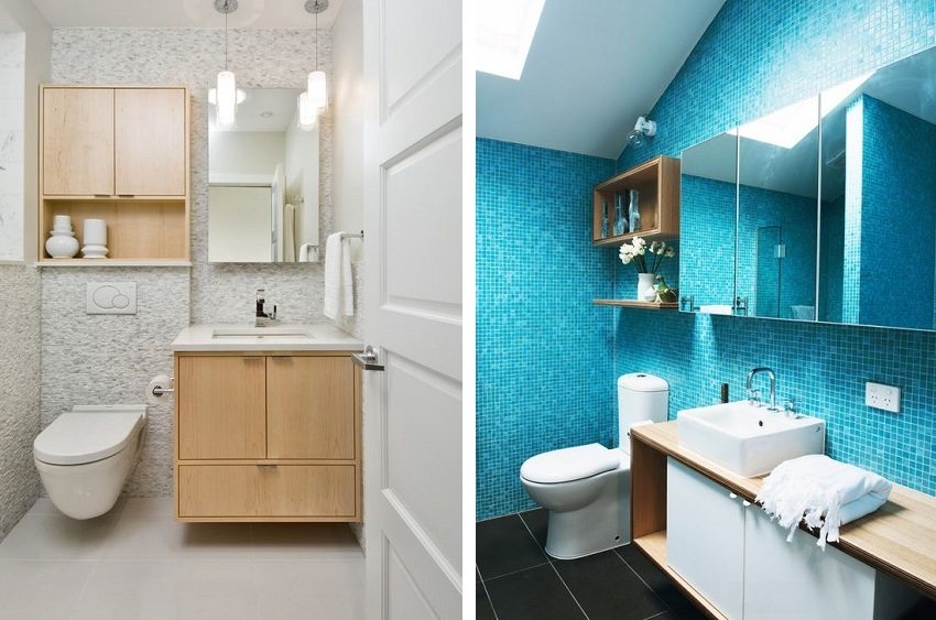 - position the plumbing correctly. If positioned correctly toilet, wall cabinet or shelf and other interior elements, you can free up a fairly large amount of space.Otherwise, you will simply clutter up the room and it will be very inconvenient to use it;