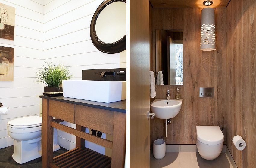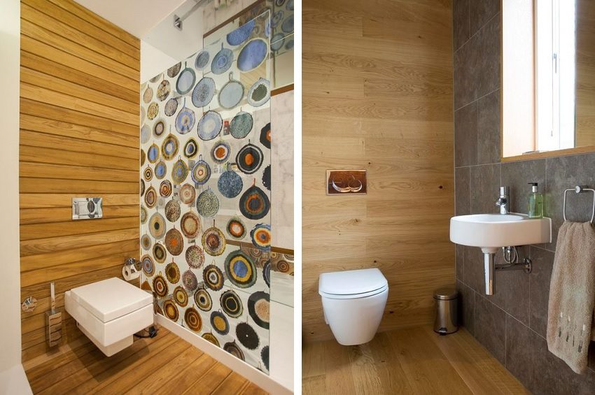 First, you should choose the most durable and moisture resistant wood. Secondly, it would be nice to additionally process it with special compounds, varnishes and impregnations, which will increase its operational properties. In this case, the design of the toilet with wood panels will delight you as long as possible.