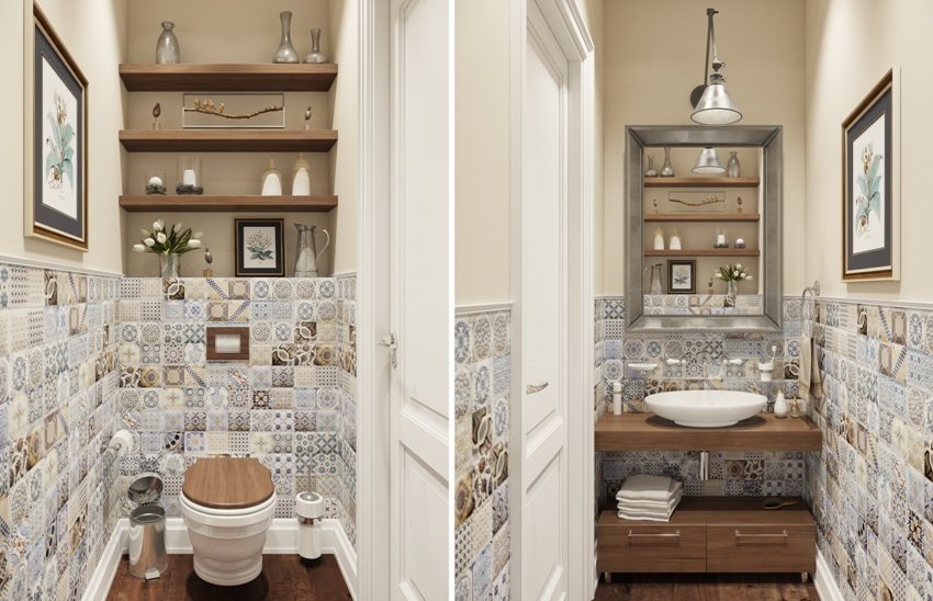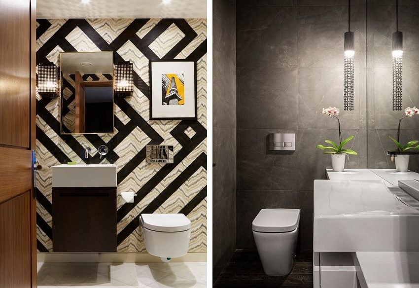- photos of finishing the toilet design with tiles look good and stylish, but this is not the only solution. Don't be afraid to use different materials, experiment with their combinations;
