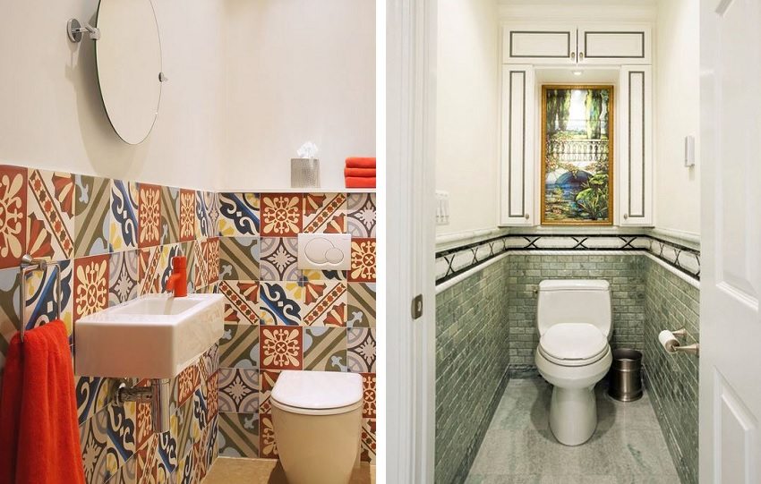 A very good option for finishing the toilet is ceramic tiles. It easily withstands humidity, looks attractive, is not afraid of shocks and other mechanical influences. If you look at the photo on the Internet toilet tiles, then you can see that a huge number of original patterns and ornaments can be created from it. Now on the market you can pick up tiles of almost any color and texture, so you can let your imagination run wild. If you do not have enough of your own design imagination, then a photo of toilet repair with tiles will help you.