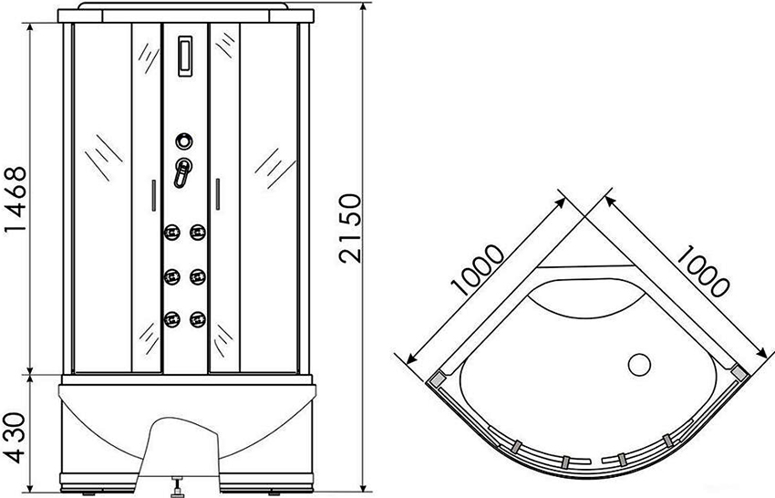 The Turkish bath is organized thanks to the built-in steam generator through which the enclosed space is saturated with steam. Thus, a high humidity is created at a low water temperature. The operation of this function is possible at a certain water pressure in the pipes.You can add a different flavor to the steam by using aroma oil.
