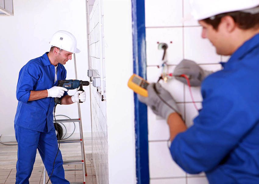 An important event is the new wiring. The cable, enclosed in a corrugated pipe, is hidden in the wall. For the bathroom, you should purchase sockets with increased moisture resistance. After laying all communications, the grooves are filled with a cement-sand or plaster mixture.