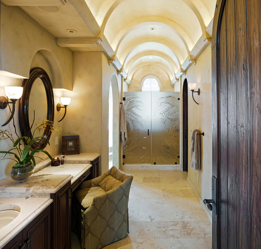 For spacious rooms, the direction of the loft and Provence is suitable. The first option will help to get room for creative ideas. In this case, it is recommended to reconnect rough surface finishes with stylish interior accessories and art objects. The premises are decorated in gray, blue, beige colors with a metallic sheen. The use of concrete surfaces and masonry is typical. For such a design, old, rarity inserts that remind of the last century will be appropriate. Unusual bathroom design options are clearly demonstrated in the photo.