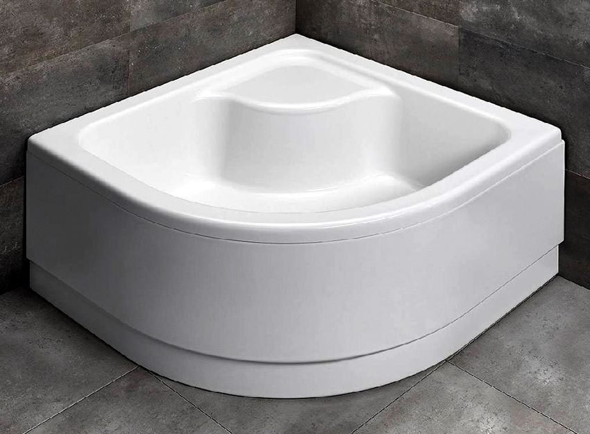 The most popular are acrylic pallets. The material is able to retain heat for a long time, while heating up in a matter of minutes. Acrylic pallets are characterized by non-slip coating and safe operation. No unpleasant noise is emitted when water jets hit the surface. Due to the fact that acrylic is easy to process, the product can be given any configuration by attaching additional elements. The surface is easy to clean, which allows it to remain aesthetic and presentable for a long time.