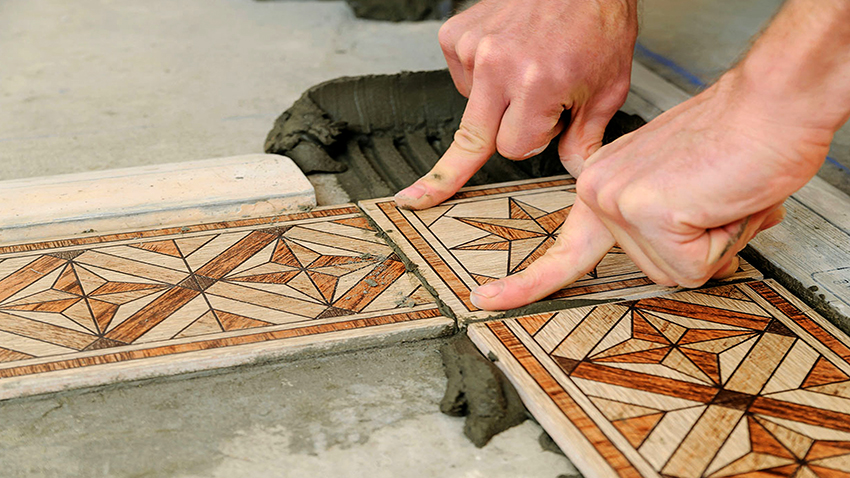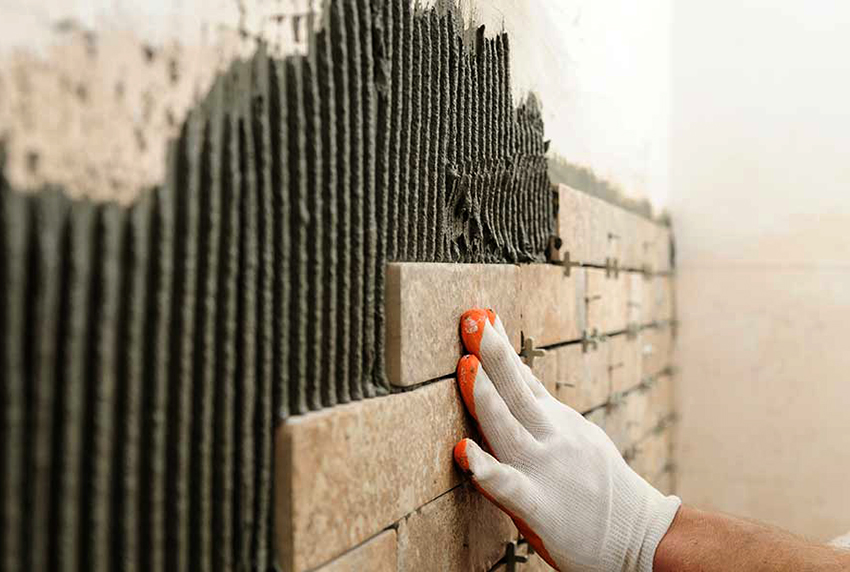 To prevent the mixture from losing its adhesive qualities, moisten the cement panel with a sponge before use. The adhesive is applied to the back of the tile with a notched trowel. The layer should be quite thin. This will make it possible to better fix the product, as well as save glue.