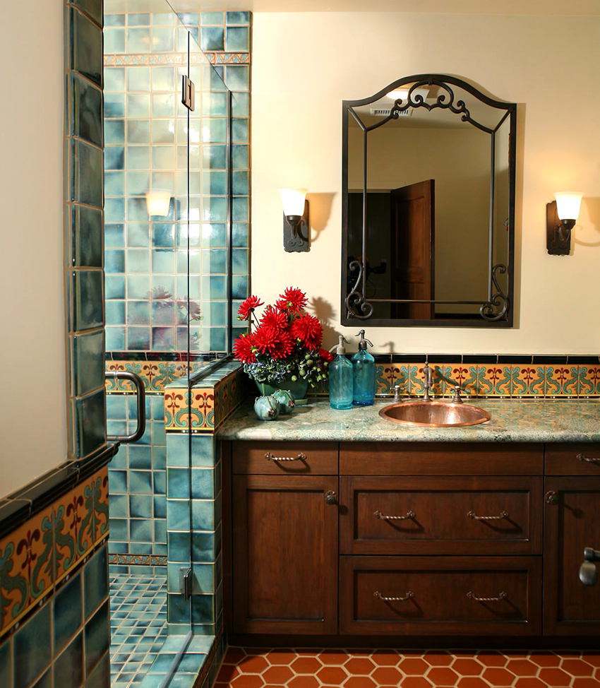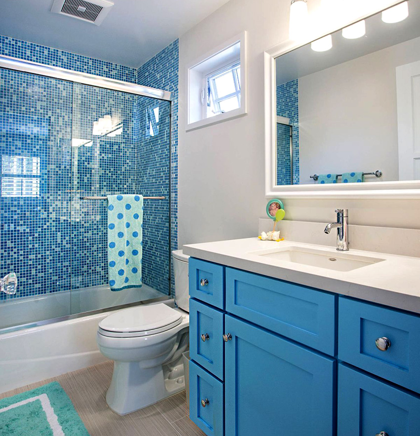 Color in the design of the bath (shower) plays a significant role, especially if the room is small. In this case, it is better to use light colors and glossy surfaces - this is how you can visually increase the space. For decoration, shades of white, blue, blue, gray are often chosen, but brighter colors can also be used.