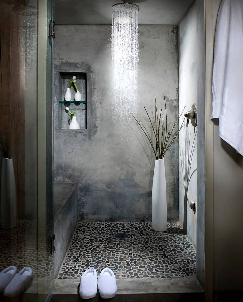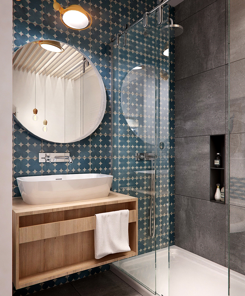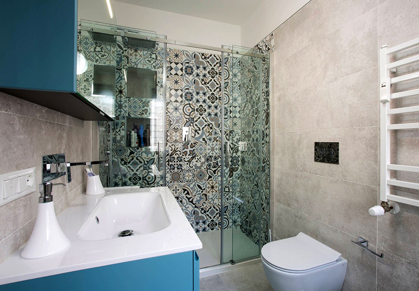 The design of a bathroom with a shower stall requires a good and high-quality finish that matches the style. All necessary materials must be waterproof.