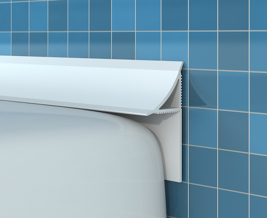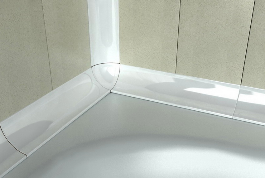 This is perhaps one of the simplest and most convenient options for protecting the joints between the bathroom and the wall. Such ribbon bordersmade of polyethylene. They are designed to seal the gap. The self-adhesive bathtub skirting board is selected individually, depending on the desired size. The ability to choose the appropriate width and height of the curb provides reliable protection against moisture penetration.