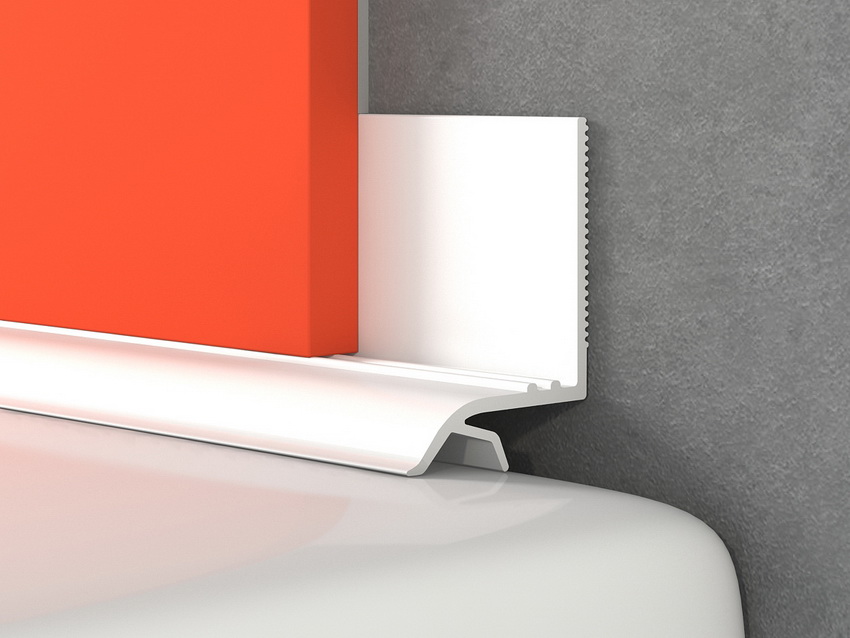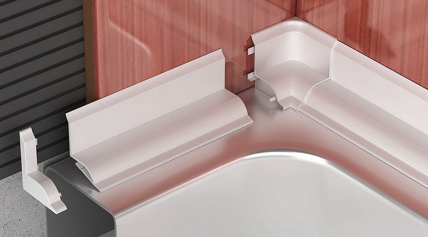 Fastening is done with a special adhesive or liquid nails. You can also find self-adhesive plastic bath skirting boards on sale. In order to fix such models, it is enough to remove the protective cover and install the part in the place where it should be located.
