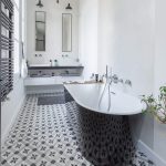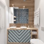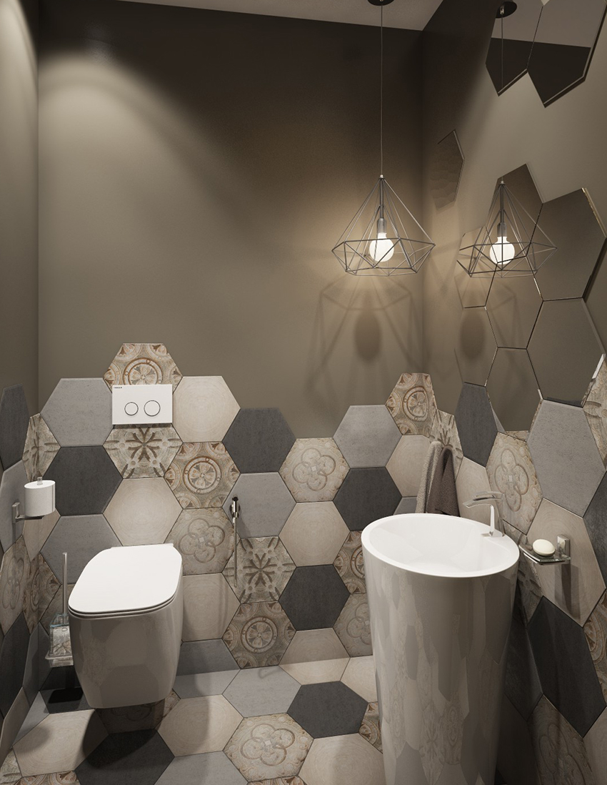 In a combined bathroom, using such a tile, you can select a mirror or plumbing. Patterned tiles are often used in combination with conventional colored ceramics. This solution is a fairly popular tile design in small toilets. Photos of products that differ in color and pattern can be viewed online.
