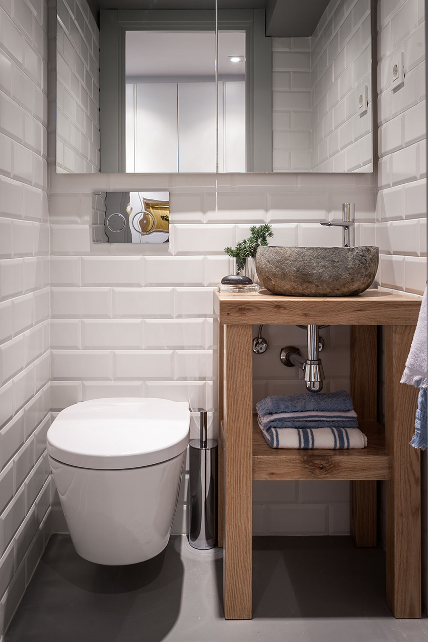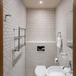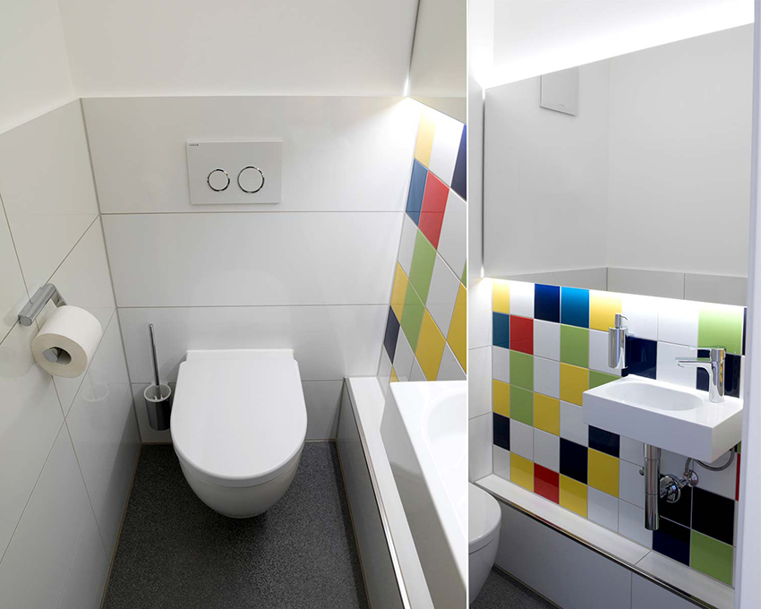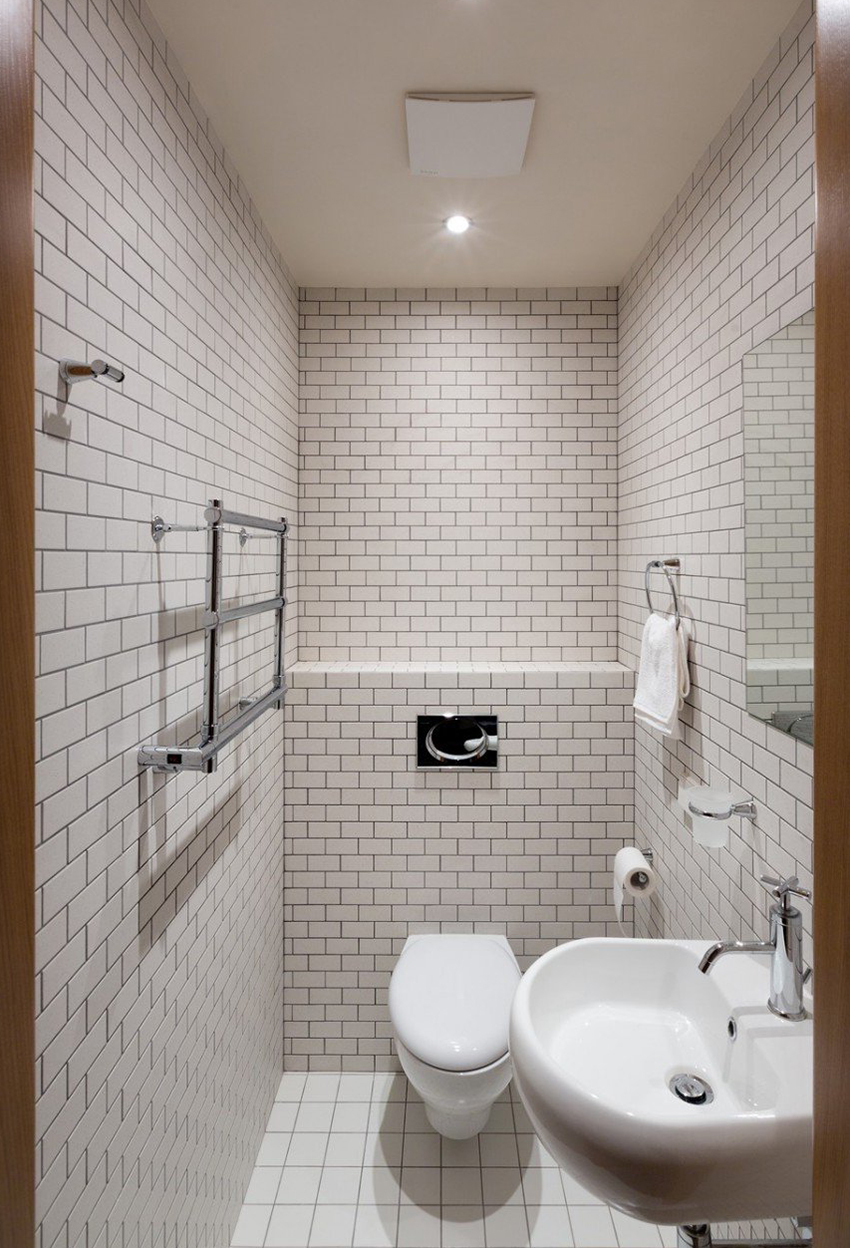 As mentioned above, light tiles are best suited for small spaces. Designers recommend choosing light tiles that have a muted tone to visually expand the area. If desired, you can finish the toilet with tiles of different colors. In this case, the rule is that light-colored facing materials increase the area. The combination of several light shades will not damage the space of the toilet or bathroom.