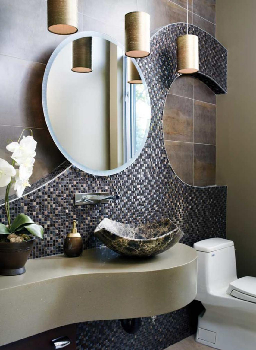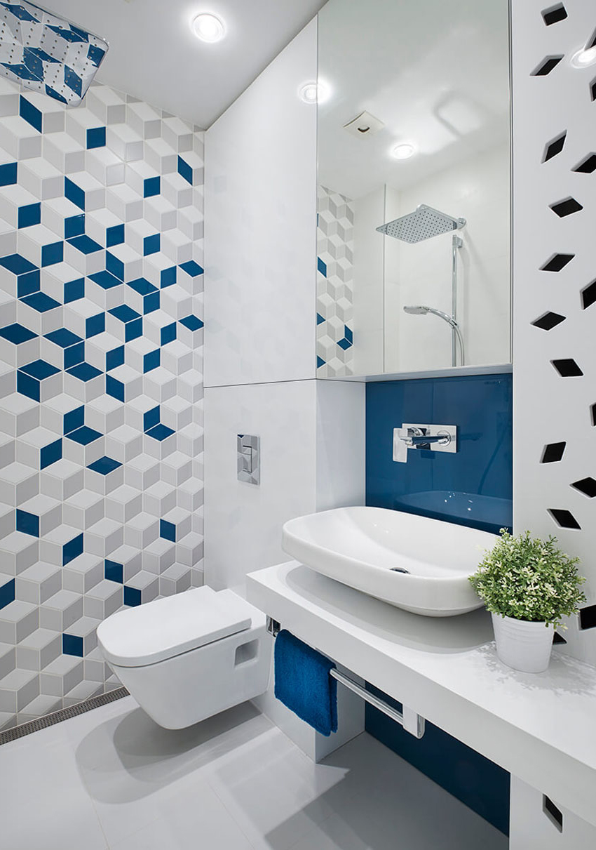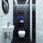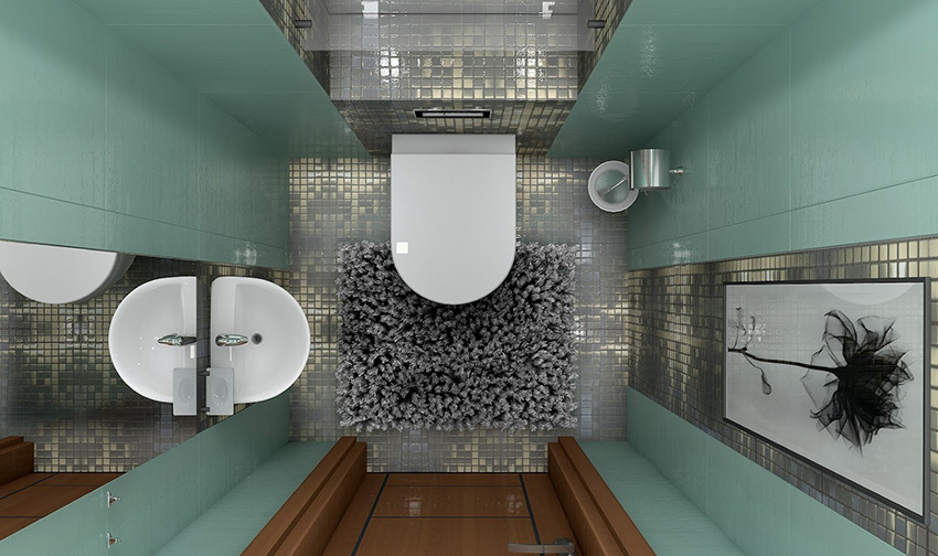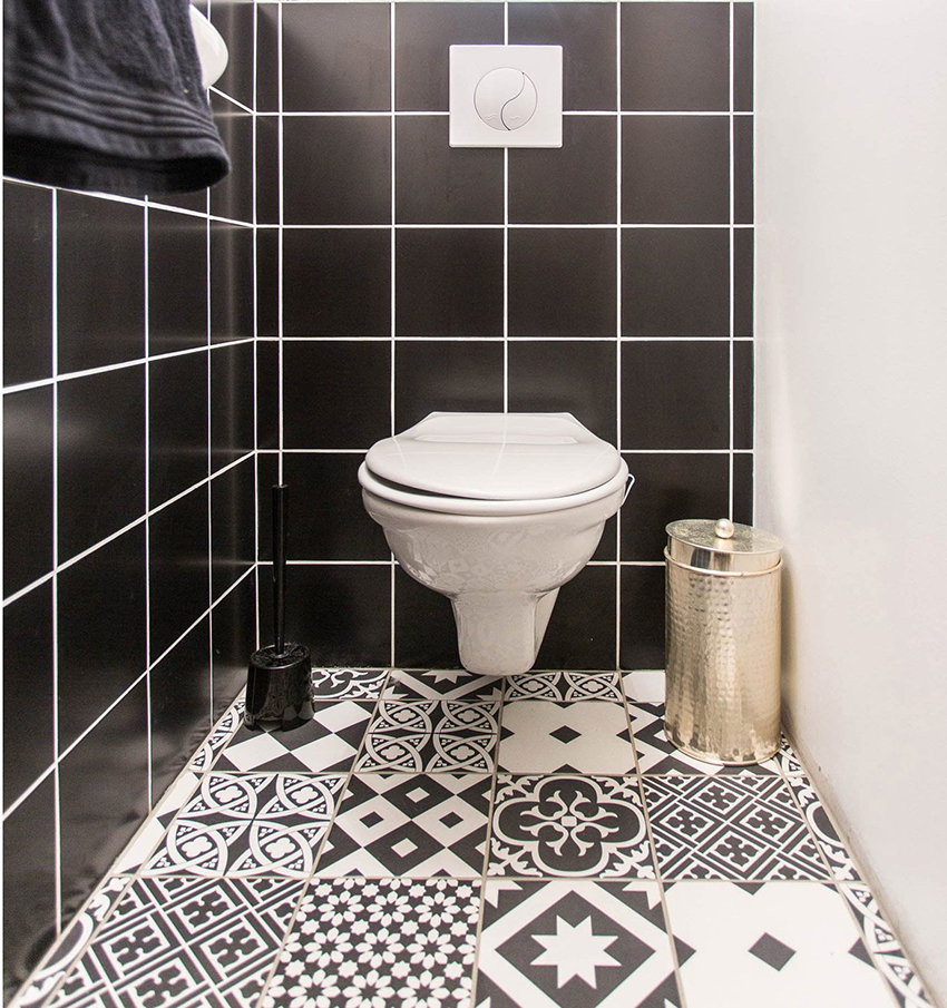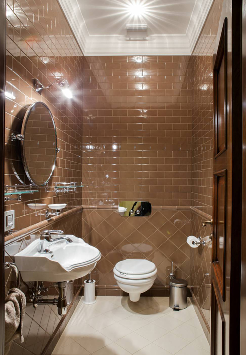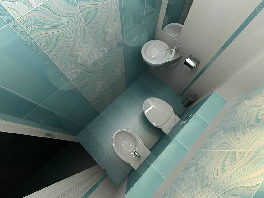 Thanks to the variety of toilet tile designs, you can correctly place accents both in a small and in a larger room. And also it becomes possible to assemble a certain pattern from individual tiled elements.