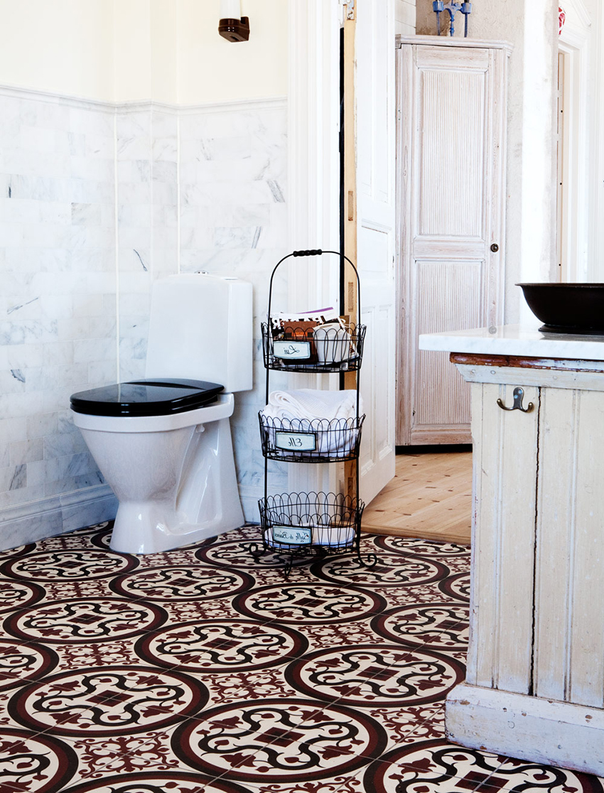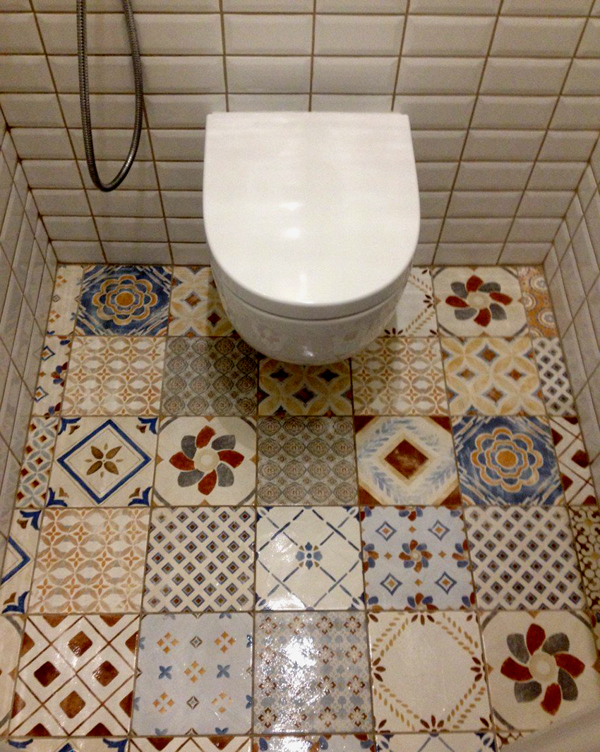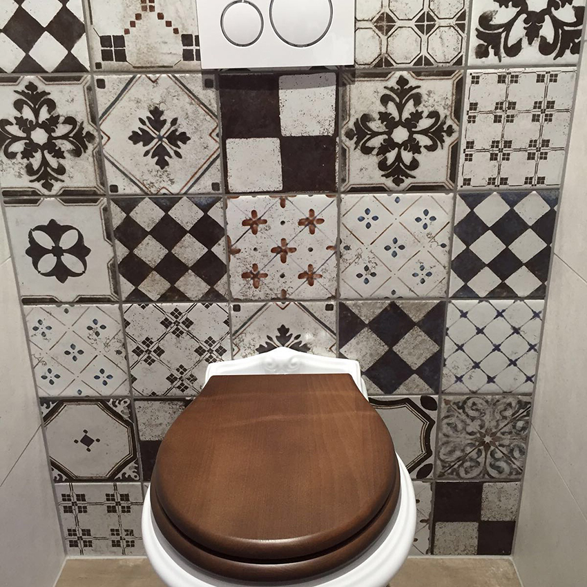 The tile can have an ornament and a picture. For a toilet, such a tile is not the best solution. However, if you want to smooth out corners in a room, then patterned tiles will let you do just that.