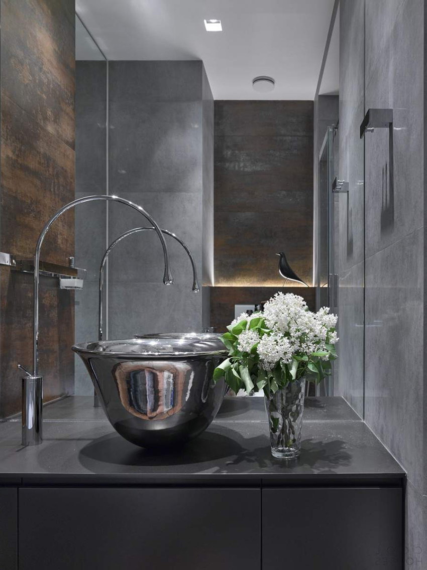 It is recommended to look at the corresponding photos. The tiles in the toilet in a modern style have a presentable appearance and effectively cope with their functions.
