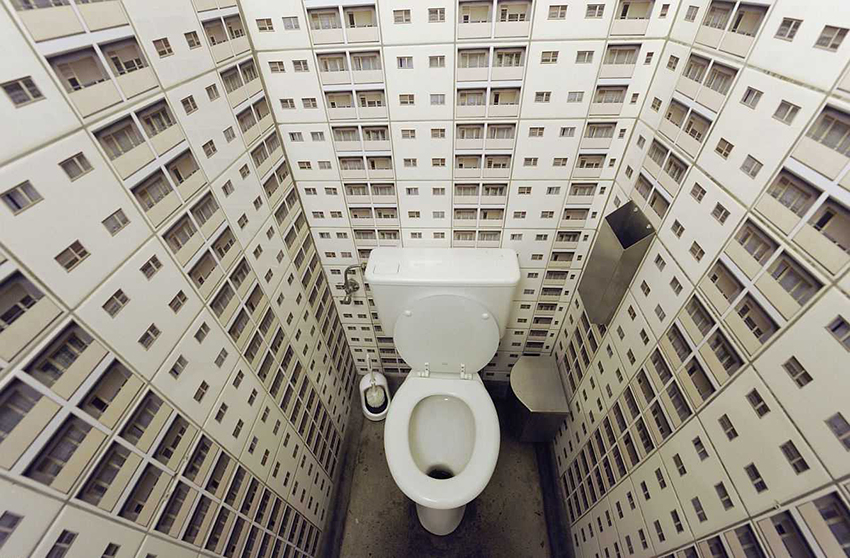 Toilet wall and floor tiles