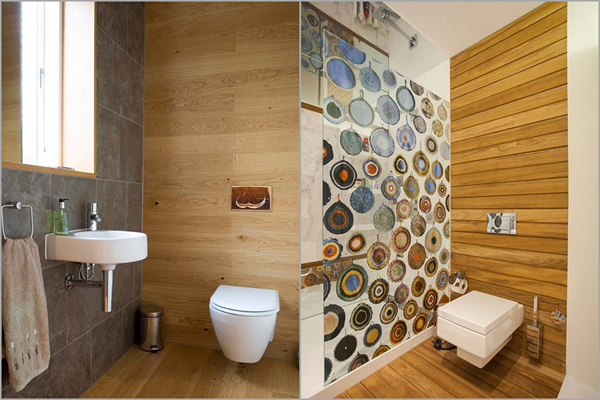 For installation on the wall in the toilet, you can choose a traditional tile, which has a rectangular shape. Inserts with patterns are also in great demand, giving the room individuality. Mosaics in small bathrooms look very impressive, but they take longer to install.
