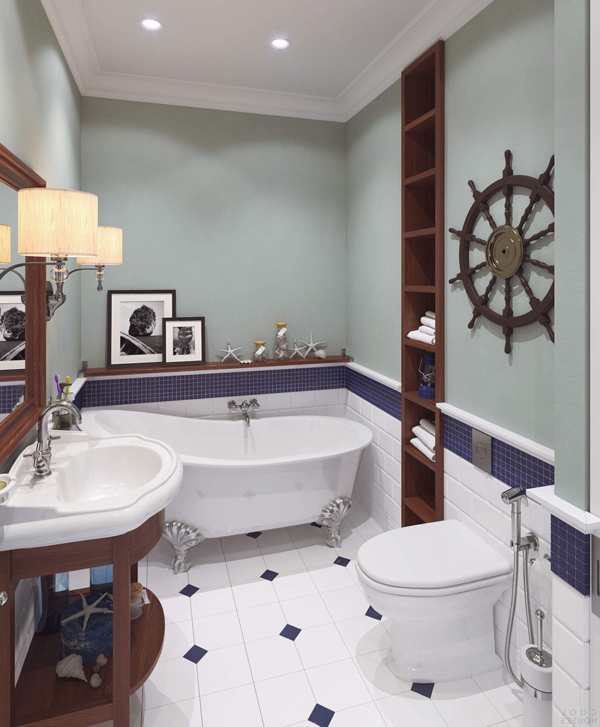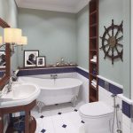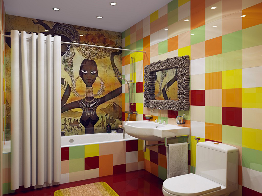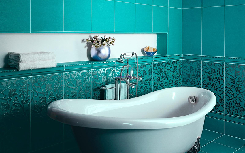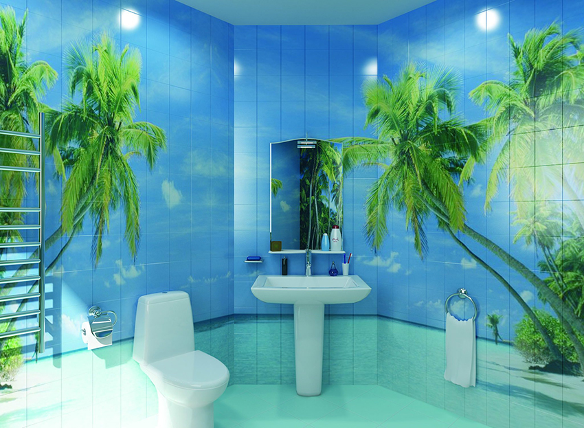 Tile with a picture. This is one of the most popular solutions for decorating a bathroom. A more common option is plain colored cladding. It is used both for complete styling and for decorating individual interior elements.