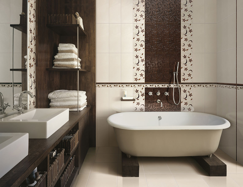 Ceramic tiles in the bathroom: design of modern finishes