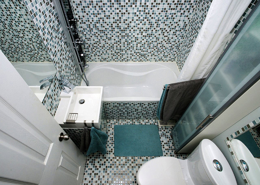 You can also use the tile for the toilet, which has an ornament. This will create coziness in a small room. The drawings on the tiles can be monochrome and multi-colored, as well as mirrored. It is also recommended to place them on the back wall.Any of these options can be used for a bathroom in a panel house.