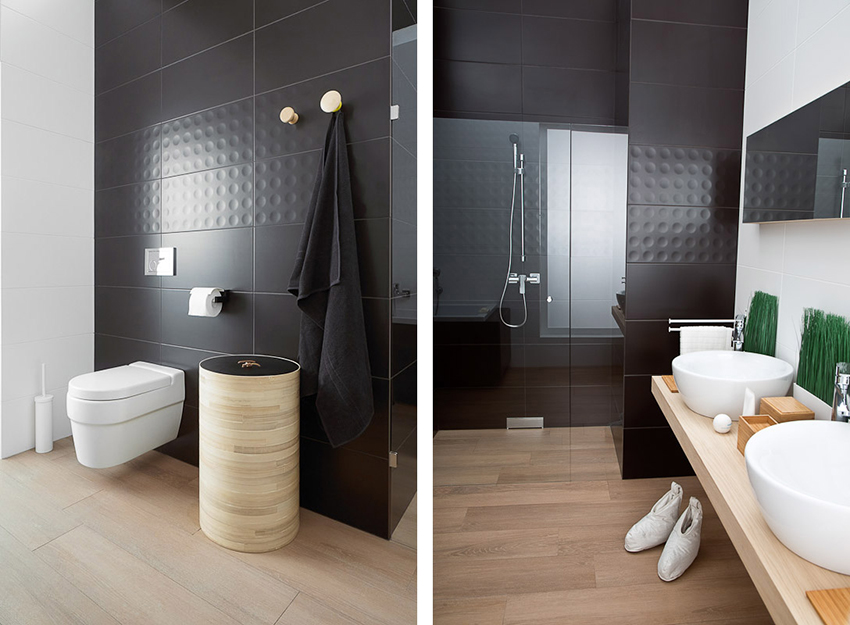 On the other hand, dark tiles have a narrowing, muffling effect. If you decide in any case to use tiles of dark colors, then it is recommended to lay it on the ceiling. Thus, the effect of lengthening the room is achieved. This tile is also suitable for laying on the floor, but it is better to choose another option for wall decoration.