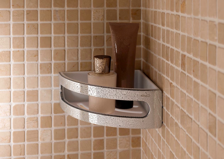 Corner shelves can be hung above the bathtub, washbasin, washing machine, providing free and convenient access to the necessary accessories. Structures can be fastened with screws or suction cups. In the first case, the shelves can support significant weight. The structures on vacuum fasteners ensure the safety and integrity of the wall. In addition, they are distinguished by their mobility, which makes it easy to move them to a new location.
