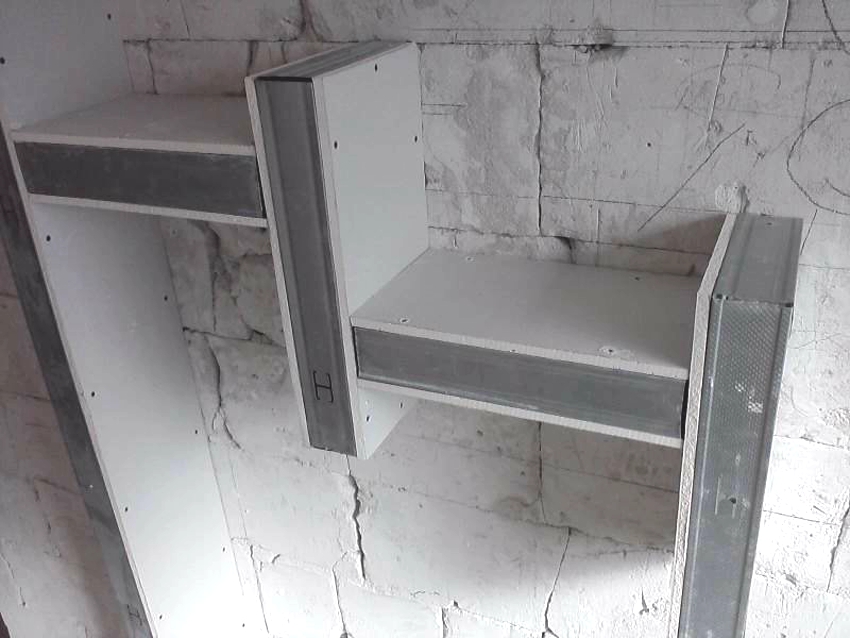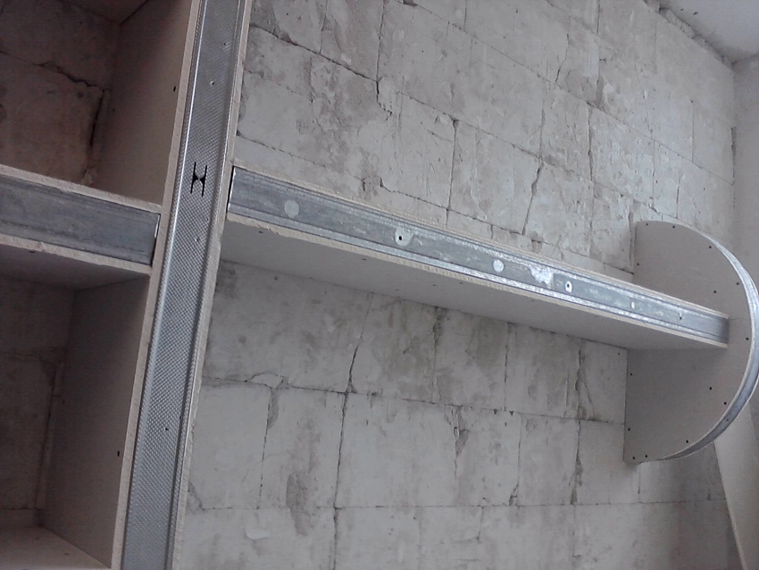 Useful advice! To reduce the thickness of the shelf, plasterboard pieces can be inserted into the starter profile, rather than using material to clad the frame outside.