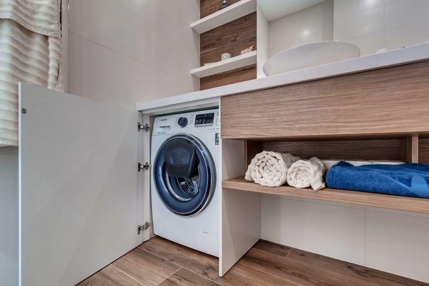 Drywall shelf above washing machine