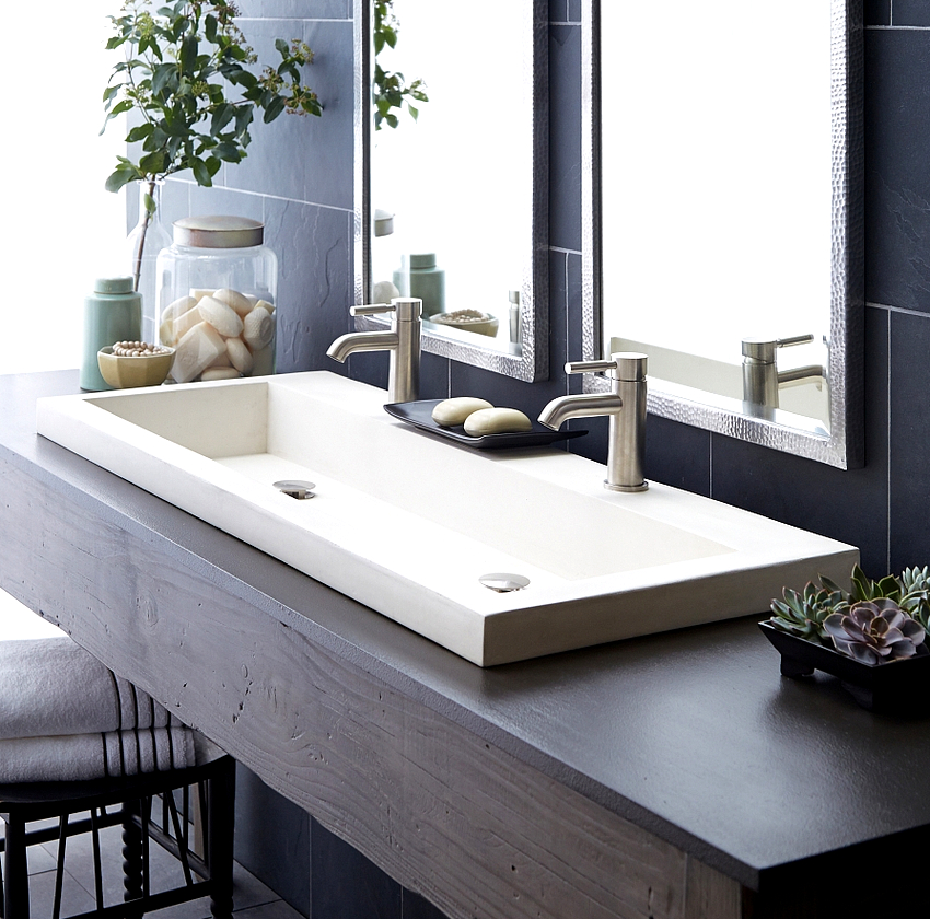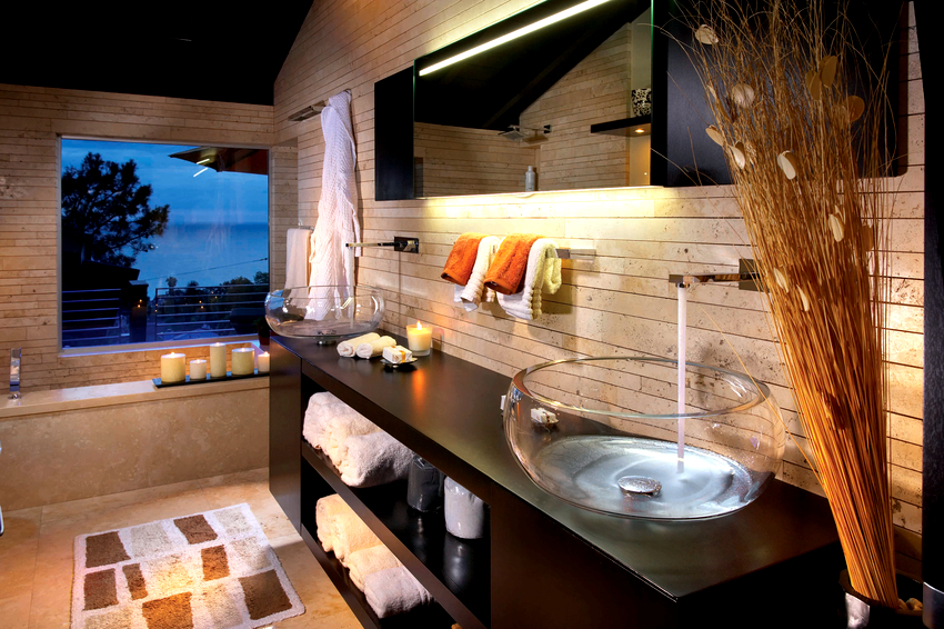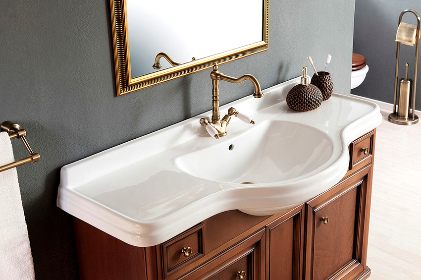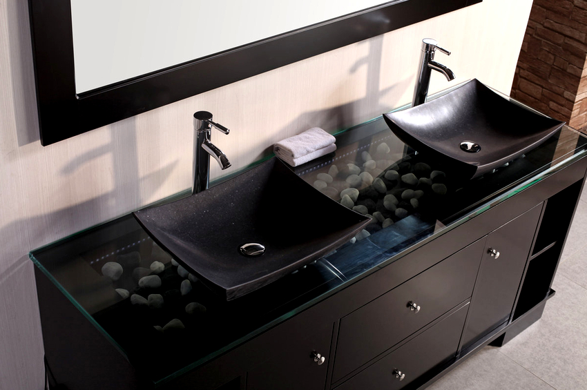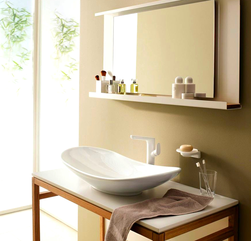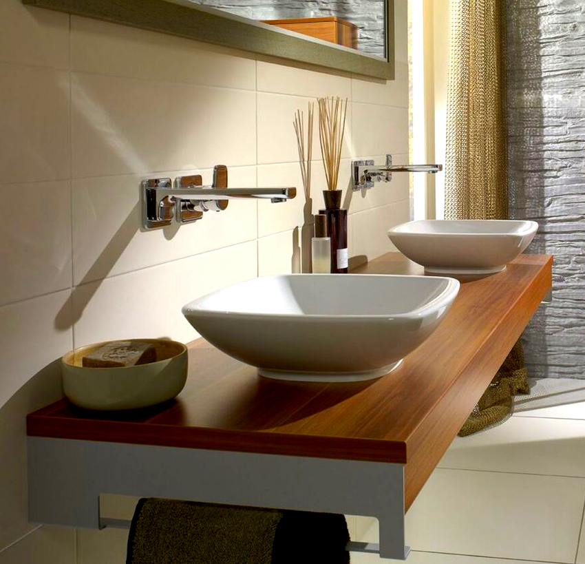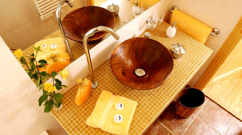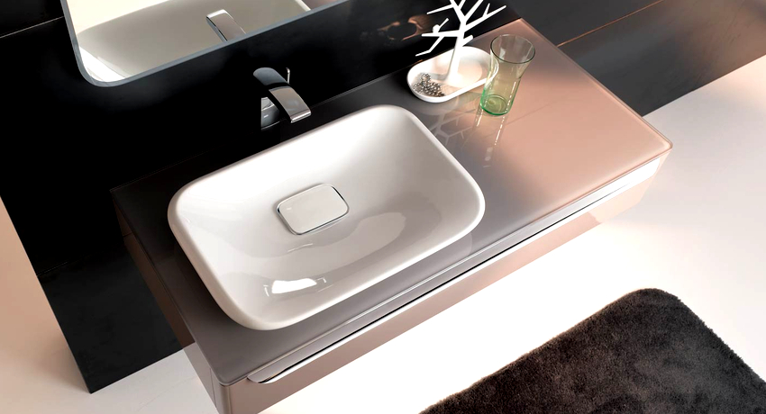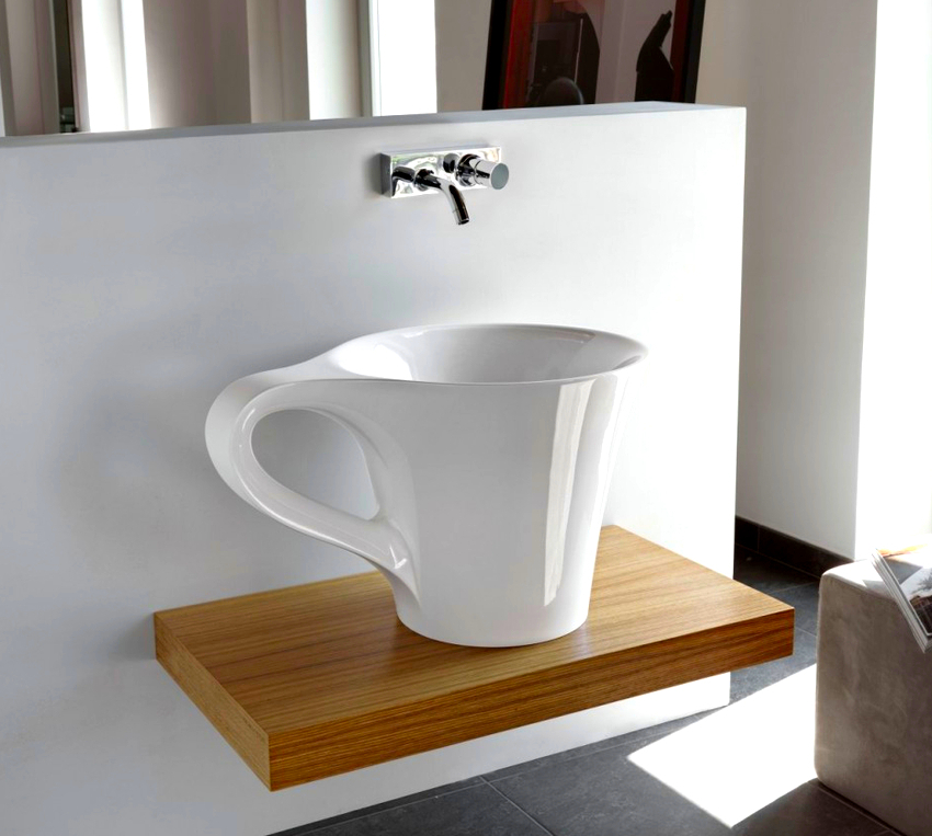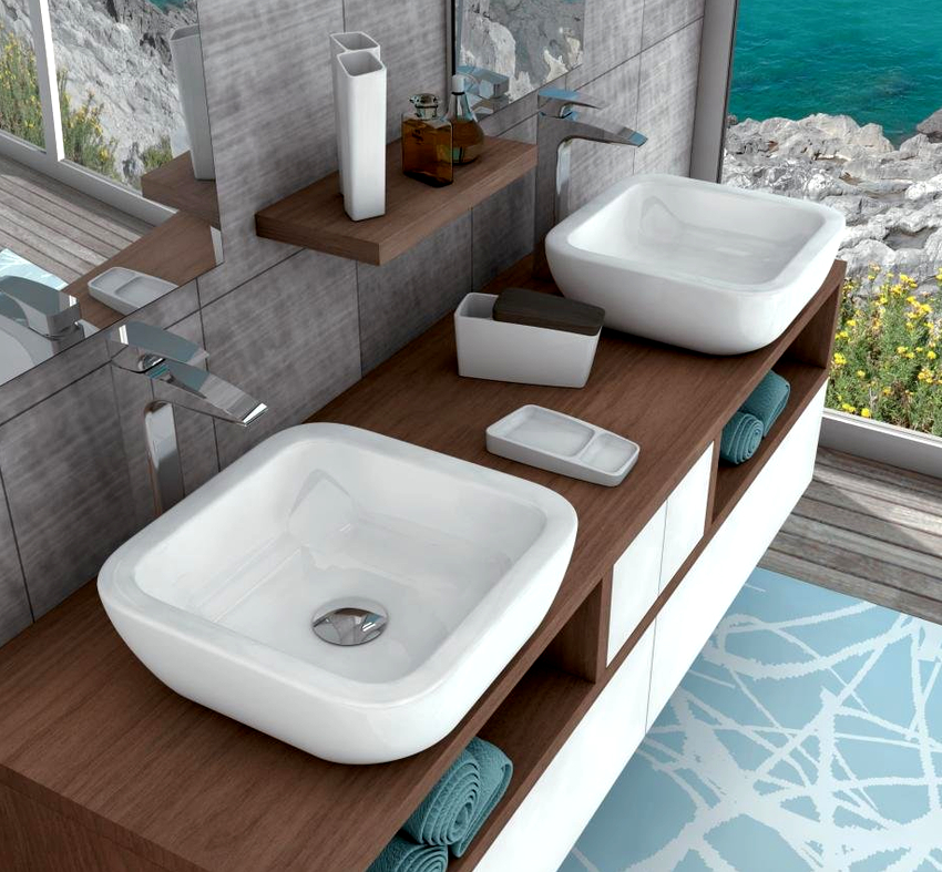 In these cases, a countertop washbasin is used. And here there is no limit to creative imagination and imagination: you can purchase a washbasin of the original form and place it in the center or with an offset to one side.