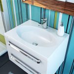 2. Aquaton MILAN 80. The product is distinguished by its original design, characterized by smooth lines, side-mounted faucet and openings for overflow protection. Made of reconstituted marble. More suitable for installation in countertops.