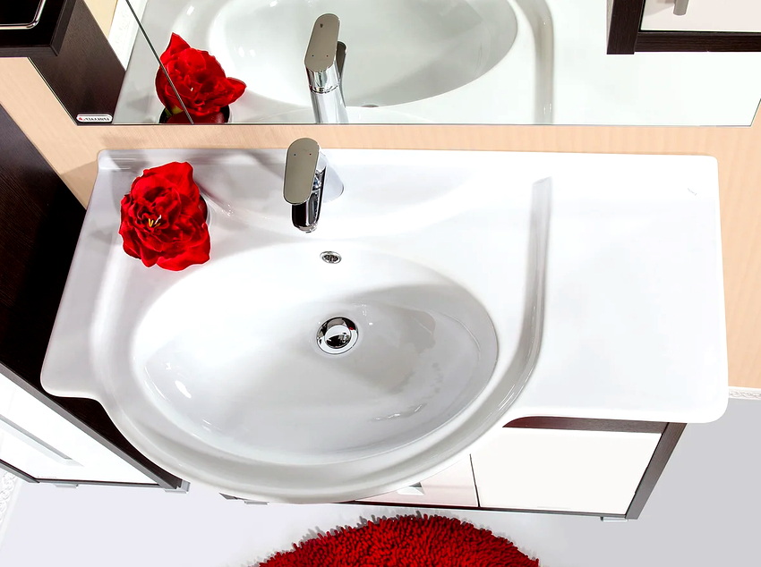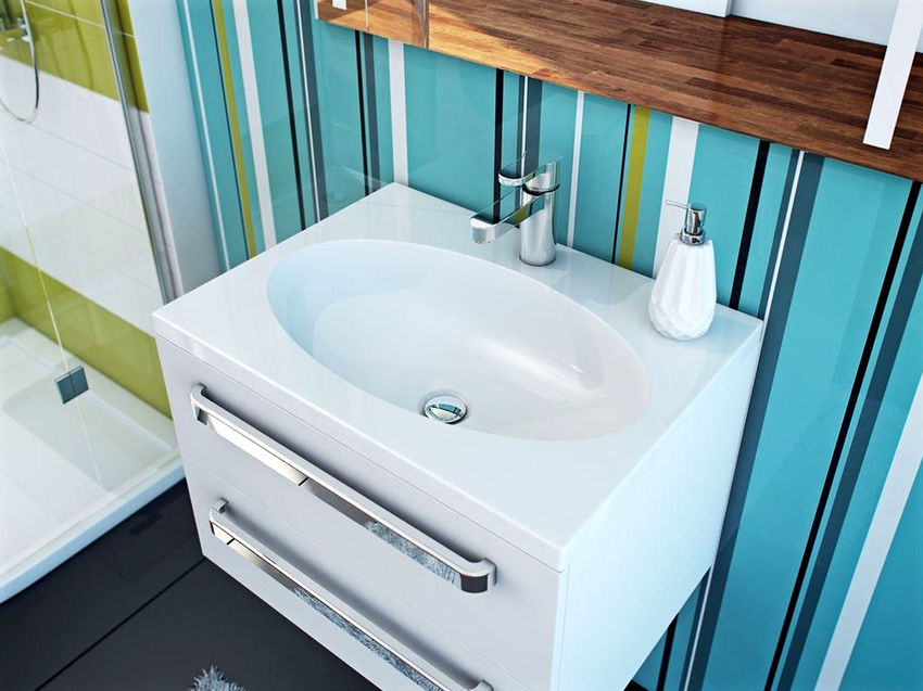 Secondly, during washing, drops of water with detergents and toothpaste scatter over a fairly large area, which complicates cleaning the surface.
