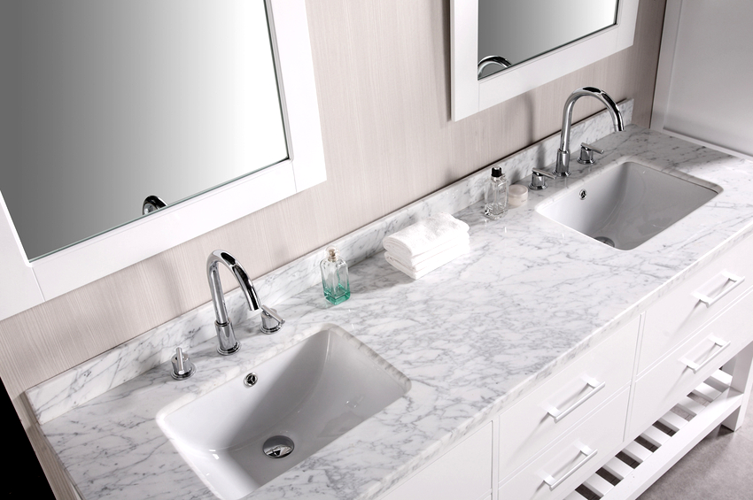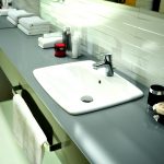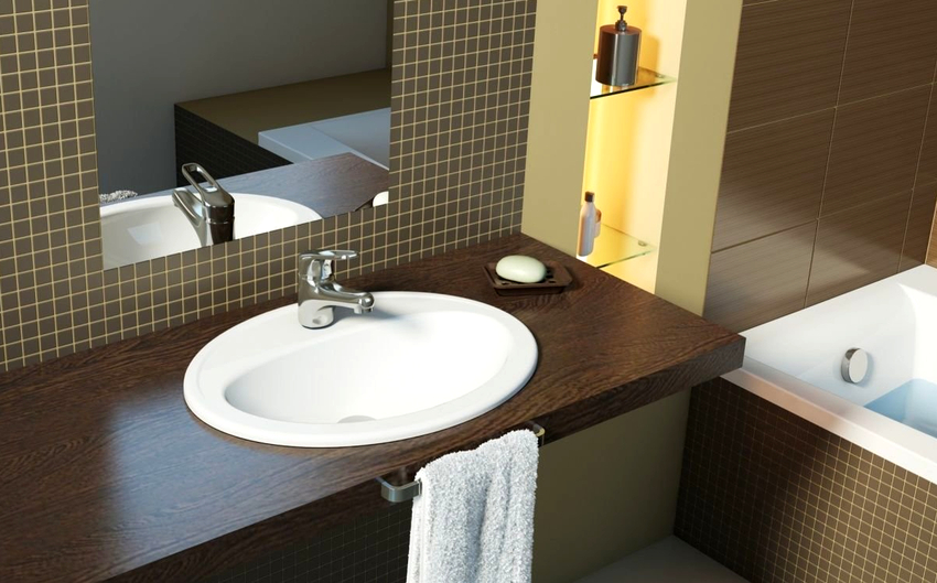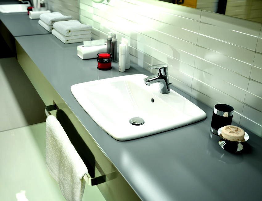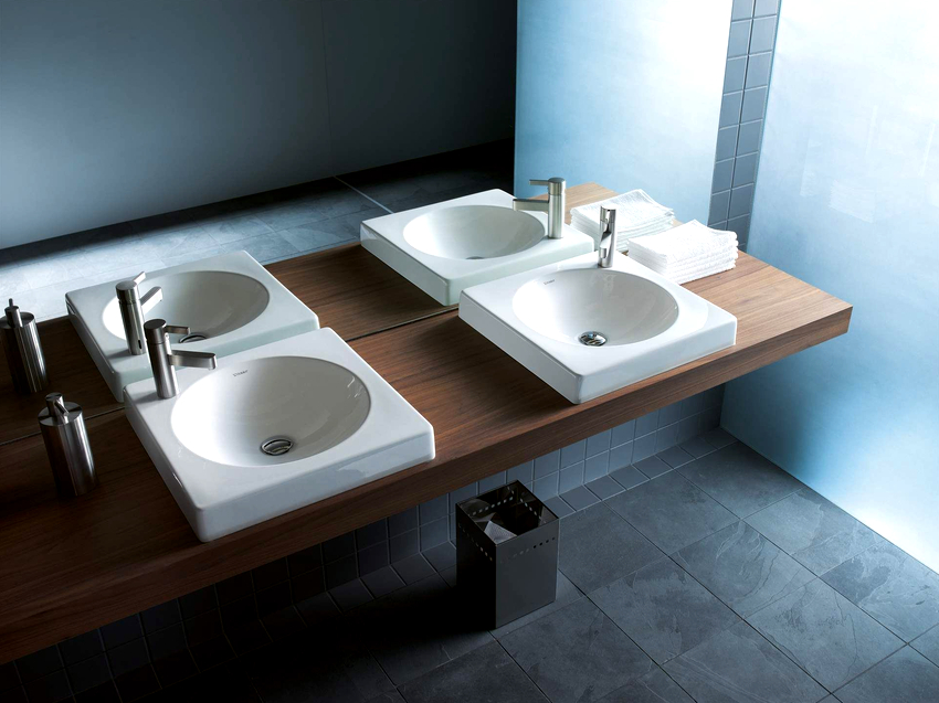Variants of placing sinks in the countertop in the bathroom