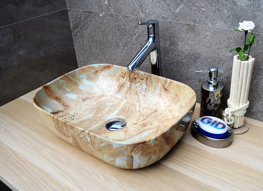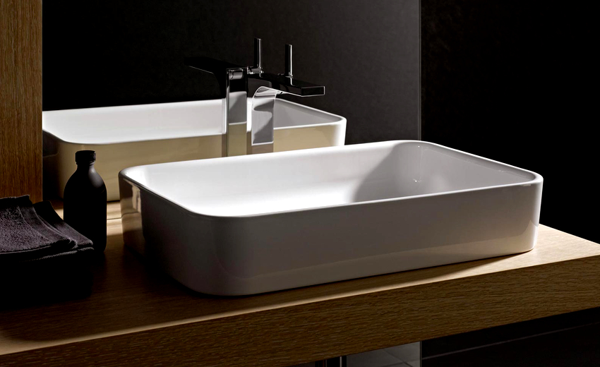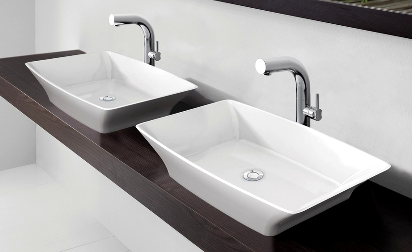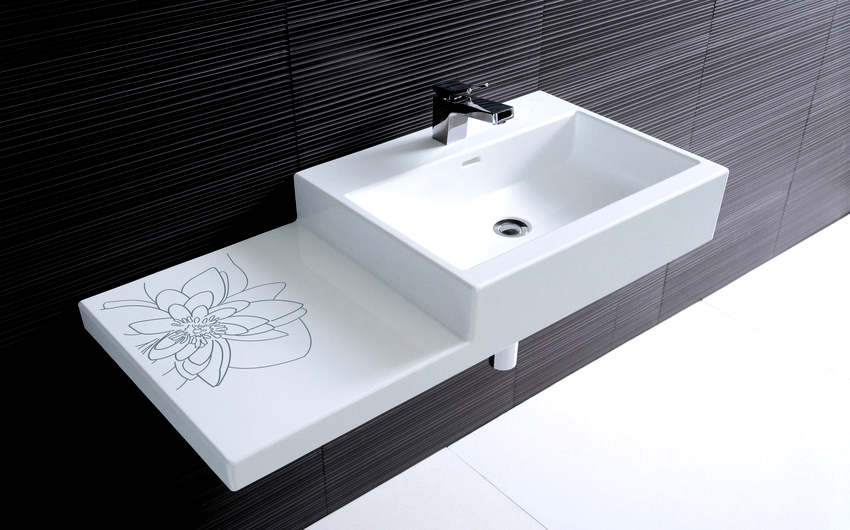 Designs can be both light, with decorative design, and laconic, but rather massive. The latter characteristics are inherent in rectangular and square sinks made of stone, porcelain or faience.