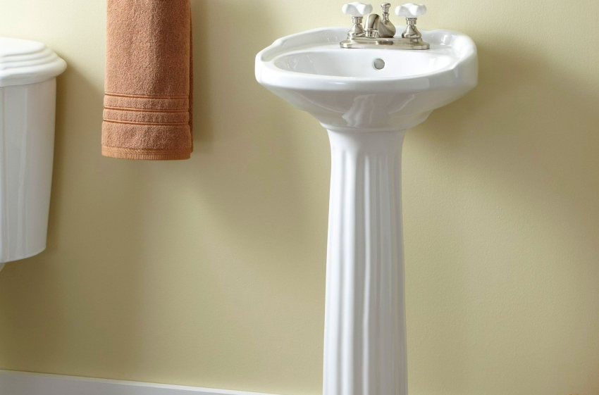- Sinks with rectangular pedestals located on either side of the corner are acceptable for rooms with sufficient free space.