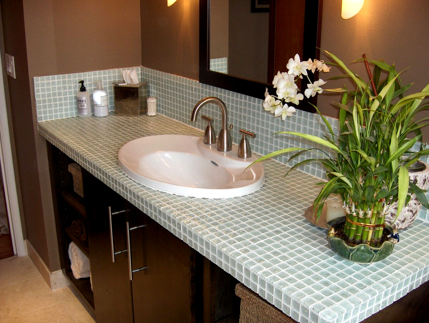 Bathroom countertops are equipped for various reasons. Some people prefer to have a significant amount of horizontal space to accommodate various items. Someone seeks to organize a separate area, installing all the floor elements under the tabletop: cabinets, an automatic machine, shelves, leaving the rest of the space free. For many, the countertop is an interesting element of the interior.
