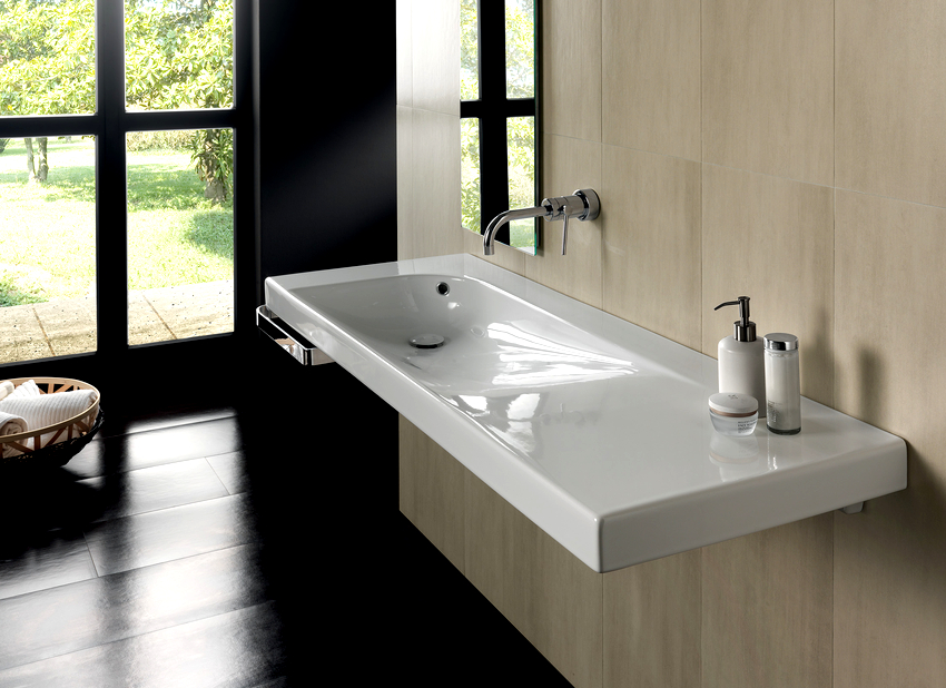 Choosing a washbasin size proportional to the size of the room is an important condition for creating an interesting interior and ensuring a feeling of comfort. To a large extent, the ergonomics of the zone as a whole depends on the size. The need to reach, bend significantly, constantly monitor the position of the hands complicates the washing procedure, strains the psyche and reduces a positive emotional mood.
