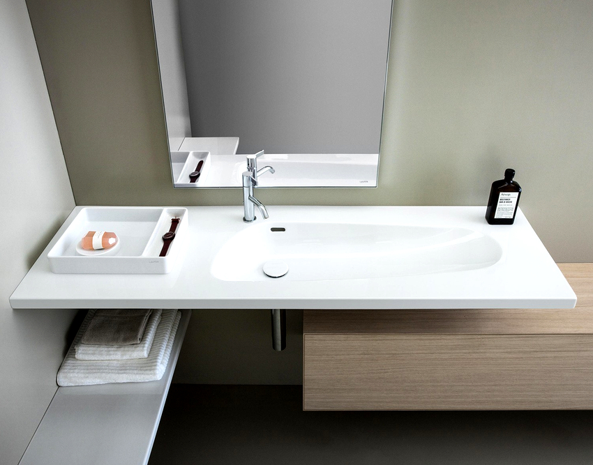 The second option can be attributed to a more aesthetic and original way. But the installation is much more complicated, more troublesome and more expensive. And the cost of built-in bathroom sinks in this way is significantly higher.