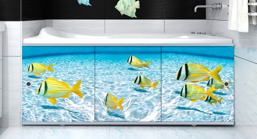 Modern manufacturers offer customers the service of printing any image on a plastic screen, which will allow them to decorate a bathroom in any style.