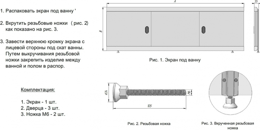 In case of purchasing an acrylic bathtub, which has non-standard dimensions, it is recommended to order an individual screen in advance. Otherwise, it will hardly be possible to find the required option. To save money, you can purchase a deaf type product. This model is less functional, however, it is suitable for protecting communications.