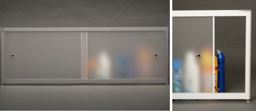 Some variants of screens are equipped with shelves that are used for storing household chemicals, as well as various other accessories. A constructive solution of this type significantly increases the functionality of a bathroom, especially a small one. The cost of bath screens with shelves corresponds to their functionality.