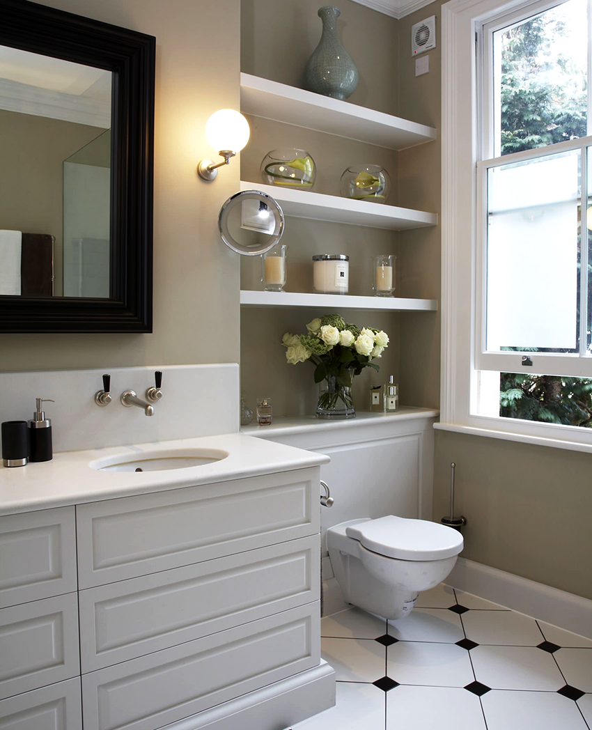 - Arrange niches and corners. For the correct organization of a small area, it is advised to use built-in and hinged structures to the maximum. To save space, you can arrange a toilet installation in a niche or make a built-in wardrobe for small things.
