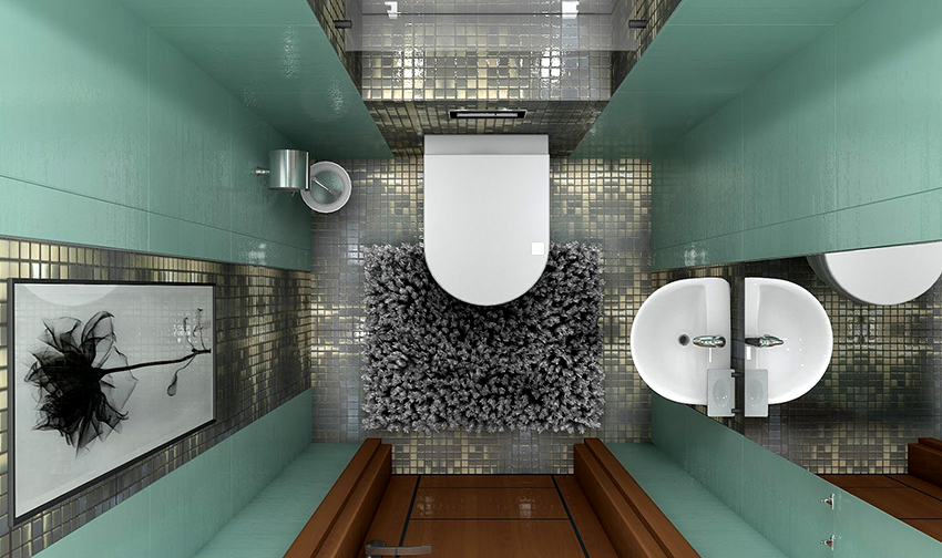 If the size of the rooms is minimal (about 2.5 m²), it is advisable to combine the rooms of the bathroom and toilet by removing a partition between them. For such projects, compact plumbing must be selected. It is better if the shower stall or bath will have a corner structure. A partially built-in toilet will do the trick. The area reserved for the installation of the washing machine can be located under the sink or located at the entrance. Medium mirrors will visually expand the room.