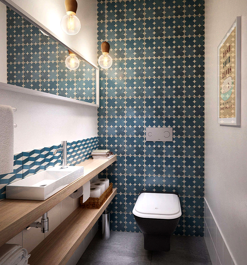 The decor chosen for the toilet and all finishing materials must necessarily be resistant to moisture and chemical detergents. These requirements are met: