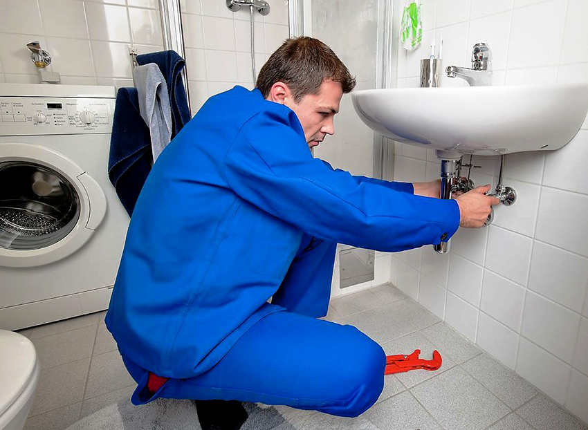 Brackets are used to fix the sink to the wall. Some models have a decorative pedestal that covers the drain and other piping elements and acts as a support. The work on dismantling the sink begins with him.